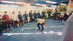 この研修ではエクササイズの方法、組み立て方はもちろん、どのように選手やクラアントに「伝えるか」がテーマでした。