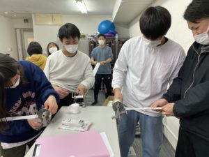 本来のアスレティックトレーナーの課程にはない授業ですが、スポーツ現場に出た時に様々な道具を扱え、どんな事態にも対応できるようなトレーナーになることが目的です。