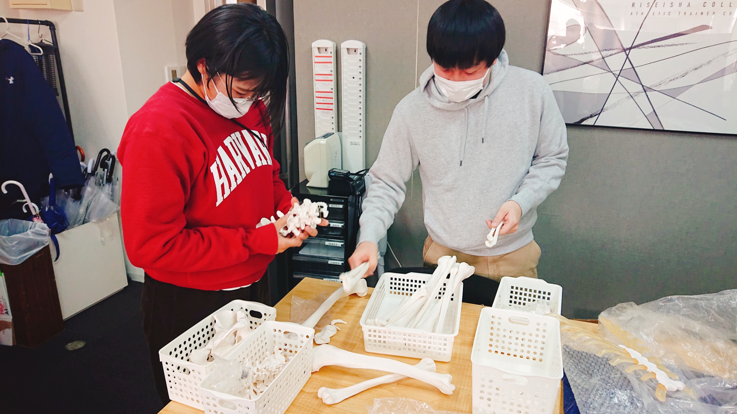 バラバラになった骨を授業で使いやすいように整理していきます。