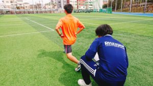 例えば、走っているときに腰が反り過ぎている、ジャンプの着地で膝が前に出すぎる、など動いている選手のエラーを見つけ、それを修正することで怪我の予防を行います。