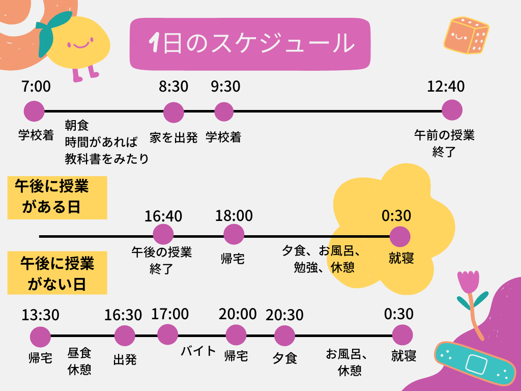 Q2, 現在の生活の様子や1日のスケジュールを教えてください!