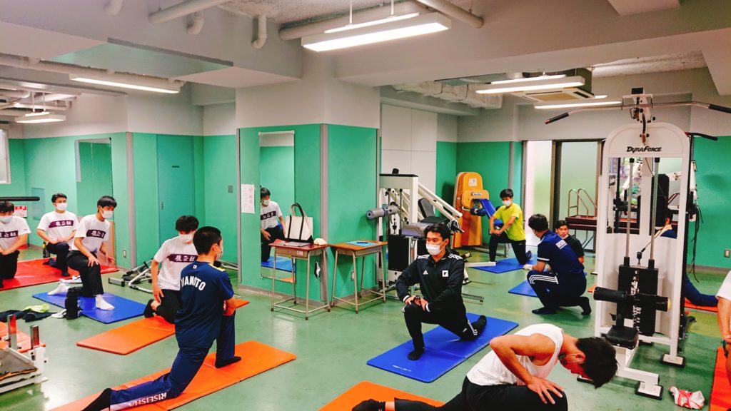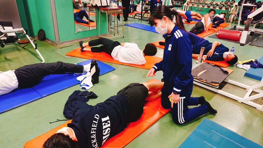 アスレティックトレーナーは選手と1対1で対応できることはもちろん、集団指導を行うスキルも大切です。
