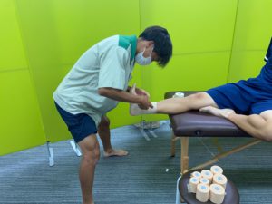 さて、本日は私が担当しているテーピングの授業も、明日で最後となりました。