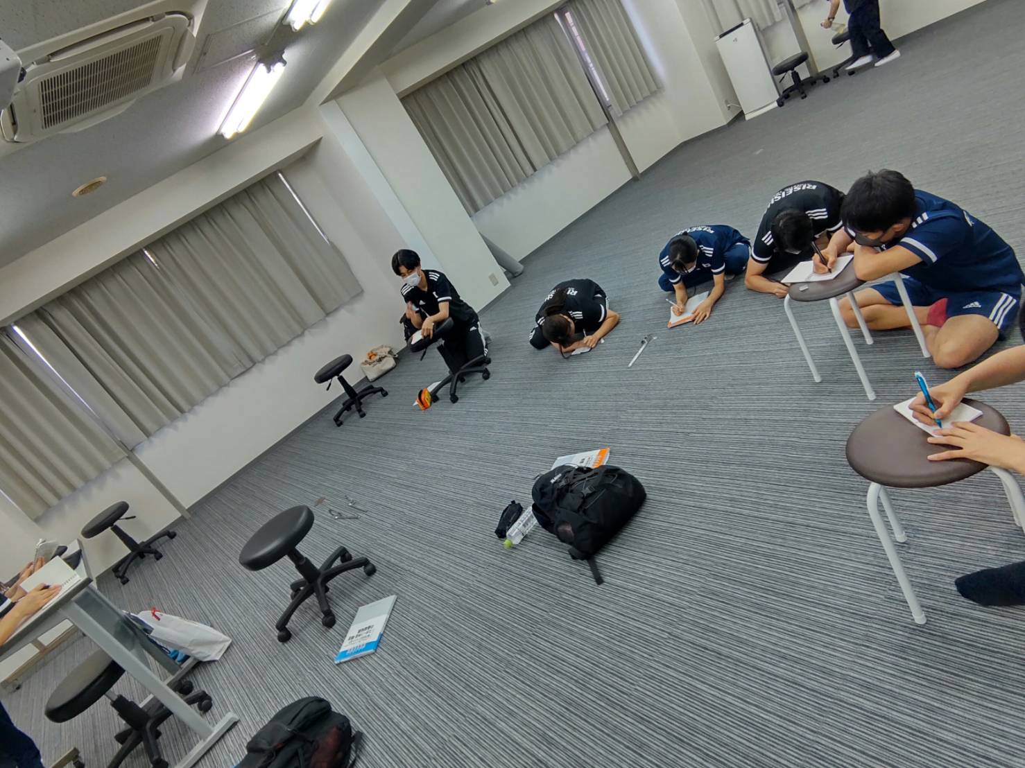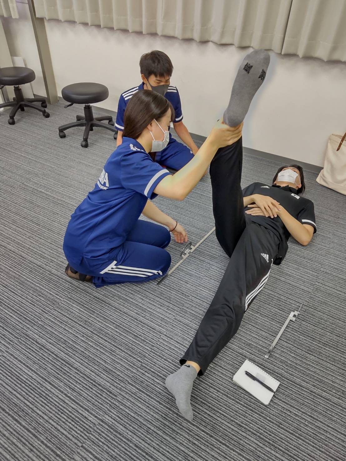 可動域の測定など、バレーボール部の実習にて行っているフィジカルチェックの