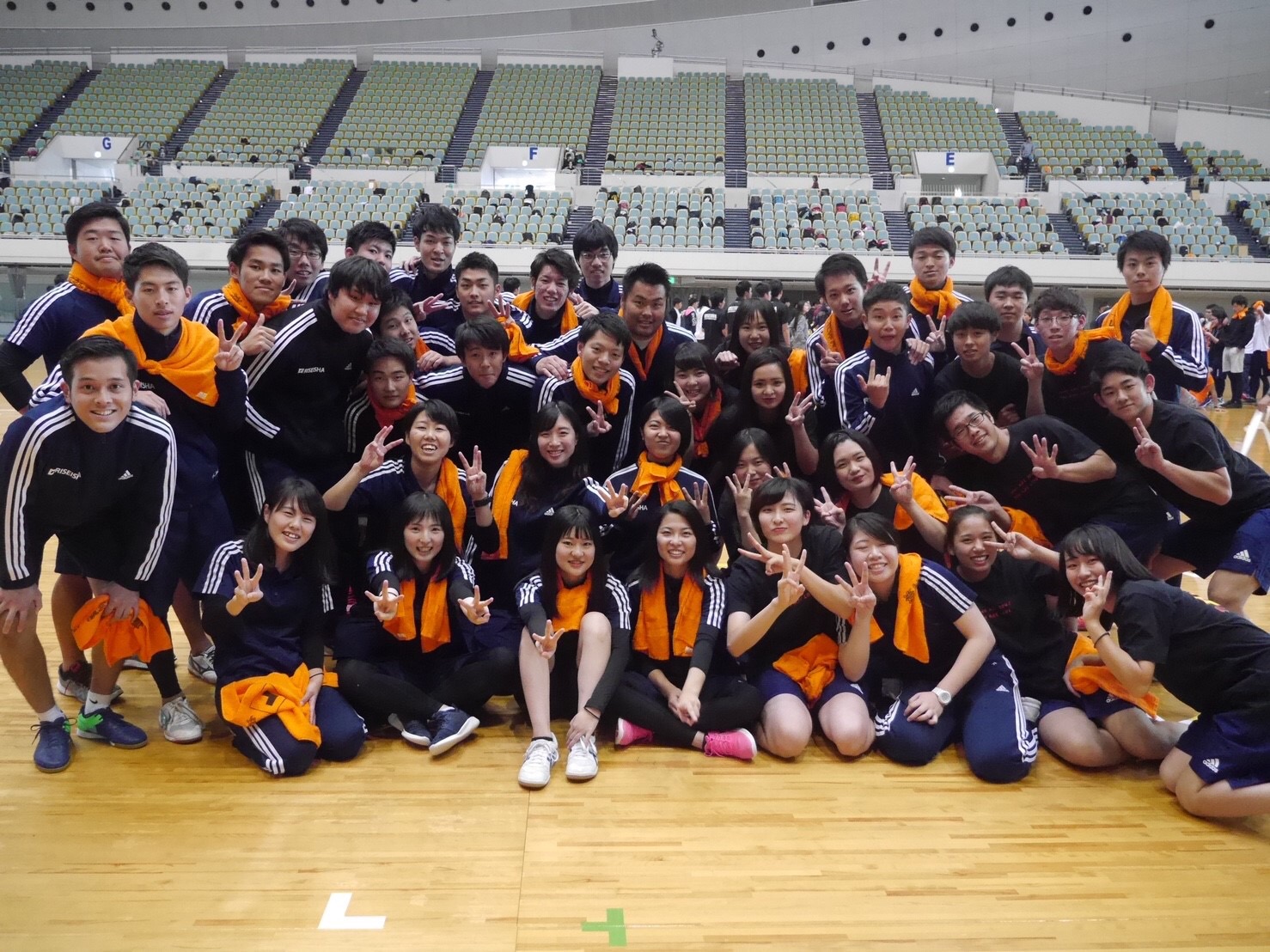 この体育祭では各学科・コースの学生・教員が集合し、各学科・コースに分かれて得点を競い合います。