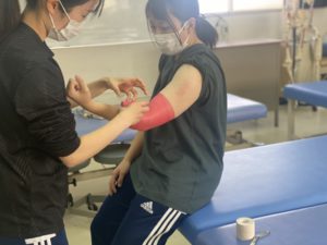 他の授業より早いですが本日、テーピングは後期試験でした。