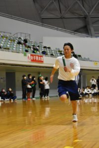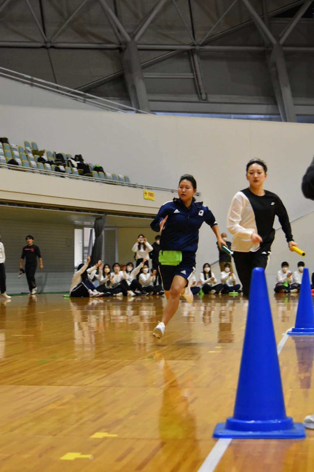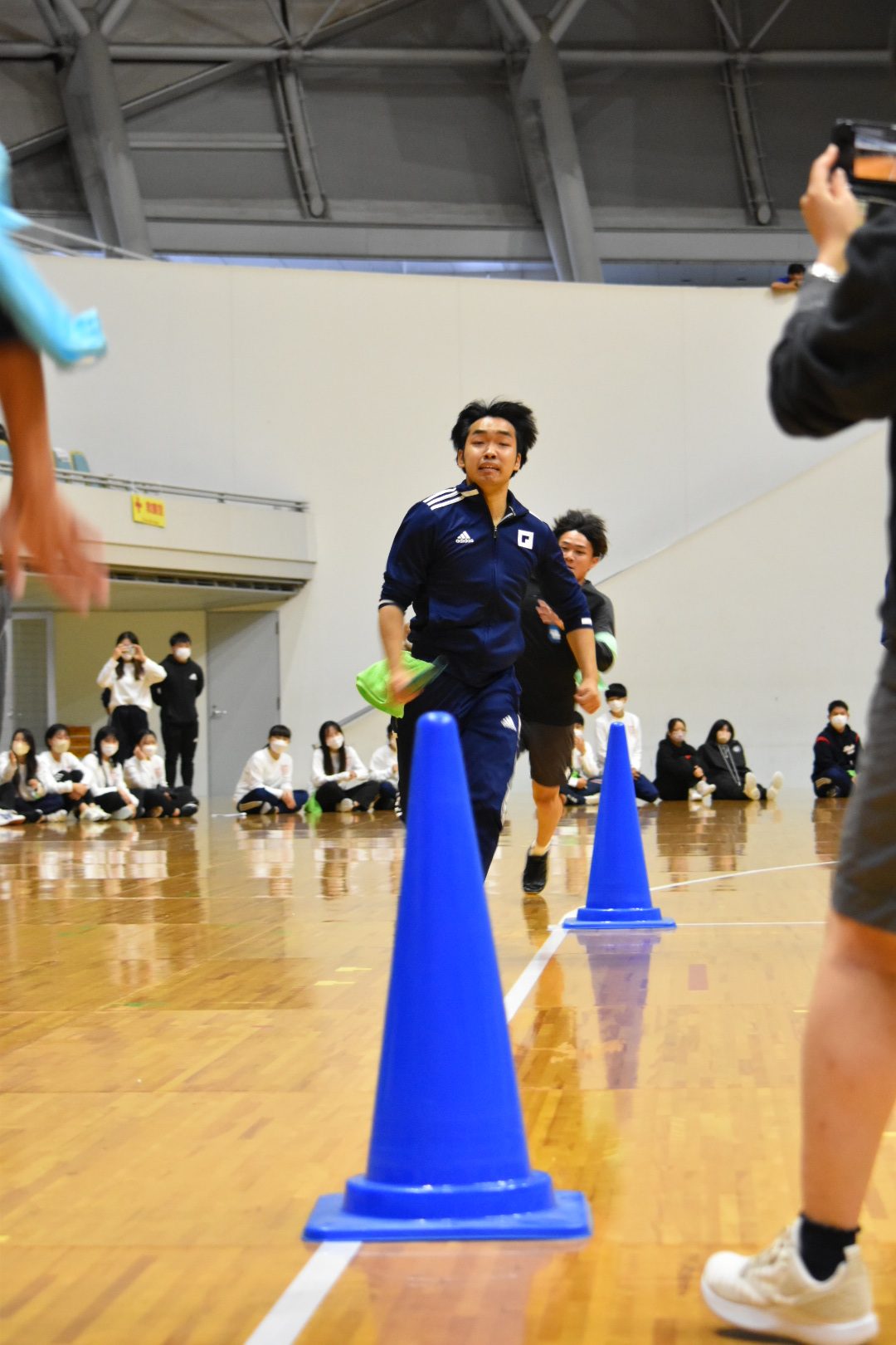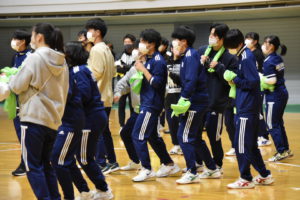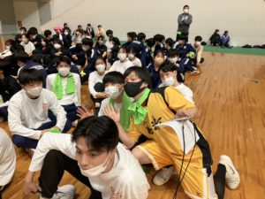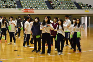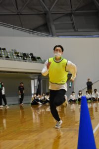 全校生徒の前でキューイングをとりながら、指導をできるのは日頃の授業の成果。感服いたします。