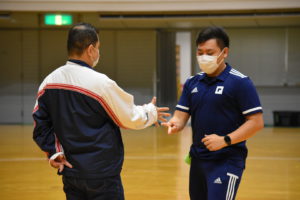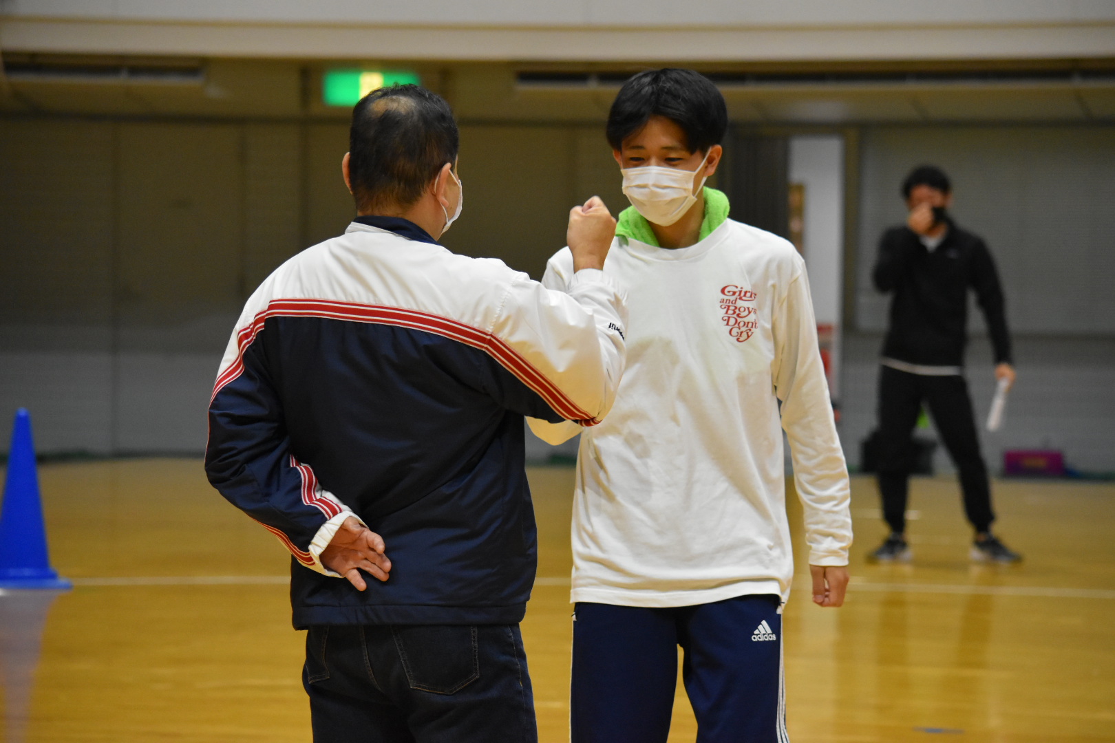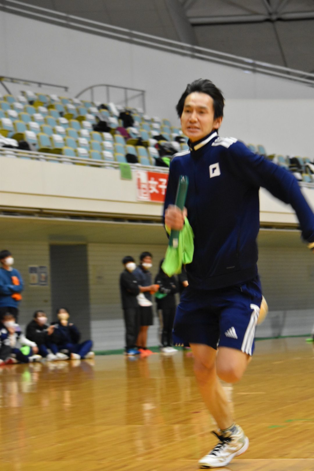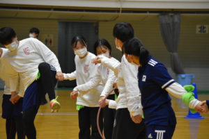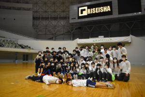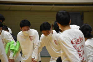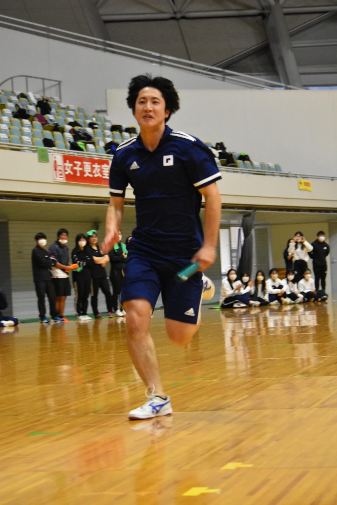 全校生徒の前でキューイングをとりながら、指導をできるのは日頃の授業の成果。感服いたします。
