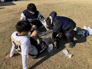 今回のAT合宿実習は、タウンクラブのU-18のチャンピオンを決める大会での応急処置や、コンディショニングを行うことを目的に実施しました。