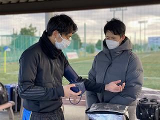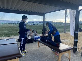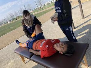 とあるチームから試合前のウォーミングアップ、クーリングダウンの実施依頼も頂き、本学学生たちは色々試行錯誤しながら、実践力を高める有意義な実習が出来たと思います。
