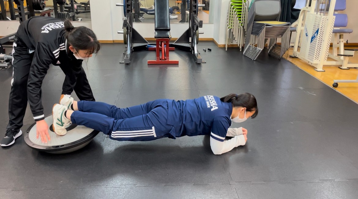 選手にトレーニングの提案を行えるよう、学内にてトレーニングの立案・