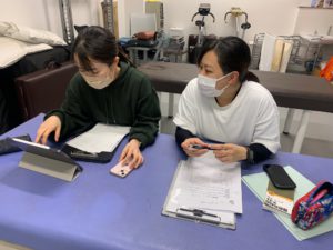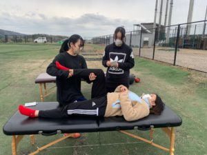 私たちトレーナーも体育館やグラウンドなどでメディカルチェックを行います。