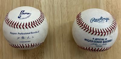 左がNPB(日本野球機構)、右がMLB(メジャーリーグベースボール)の公式ボールです。