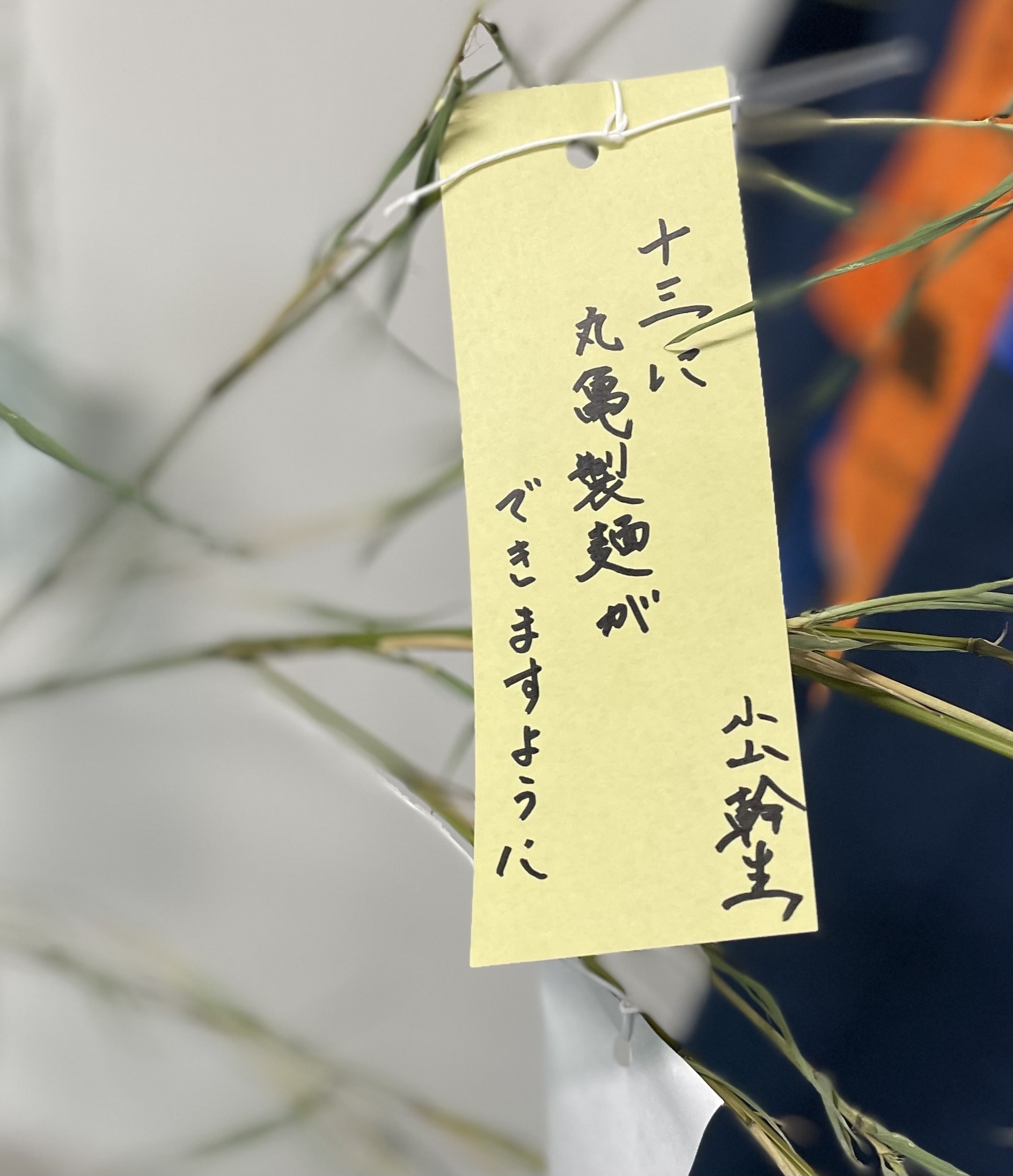 私は、十三に丸亀製麺ができないかな、という長年の思いを短冊に書きました。(笑)