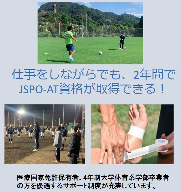 本学アスレティックトレーナーコースでは、医療国家免許保持者、4年制大学体育系学部卒業者の方を優遇するサポート制度が充実しています。 医療国家免許保持者、4年制大学体育系学部卒業者の方が本学に入学されるメリットは、平日午前中に授業が終了すること、初年度授業料が半額になることです! 本コースでは、前学での授業科目を履修とみなすこと(単位認定)を積極的に行うことで、平日の朝昼に特化した時間割を可能としています。 従いまして、午後からは自分の仕事を優先させることが可能です。 しかし、単位認定の結果や講師の都合により午後からも授業がある場合もあります。 また、1学年後期(9月)からは水曜または金曜午後に現場実習が行われます。 本学では、医療国家資格や教員免許をお持ちの方は、初年度授業料が半額になる有資格者入試を実施しています。 一度社会に出られ現場で活動されておられる方々で、アスレティックトレーナー資格の取得を希望される方は是非一度、オープンキャンパスにお越しください。