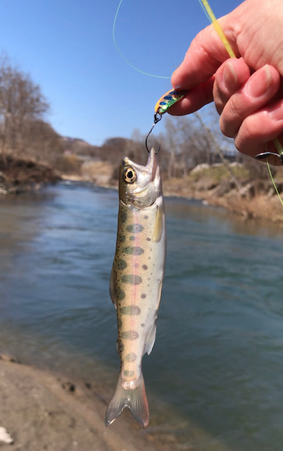 ちなみに、これは去年の春先に自宅近くの川で釣れたヤマメです ↓↓↓