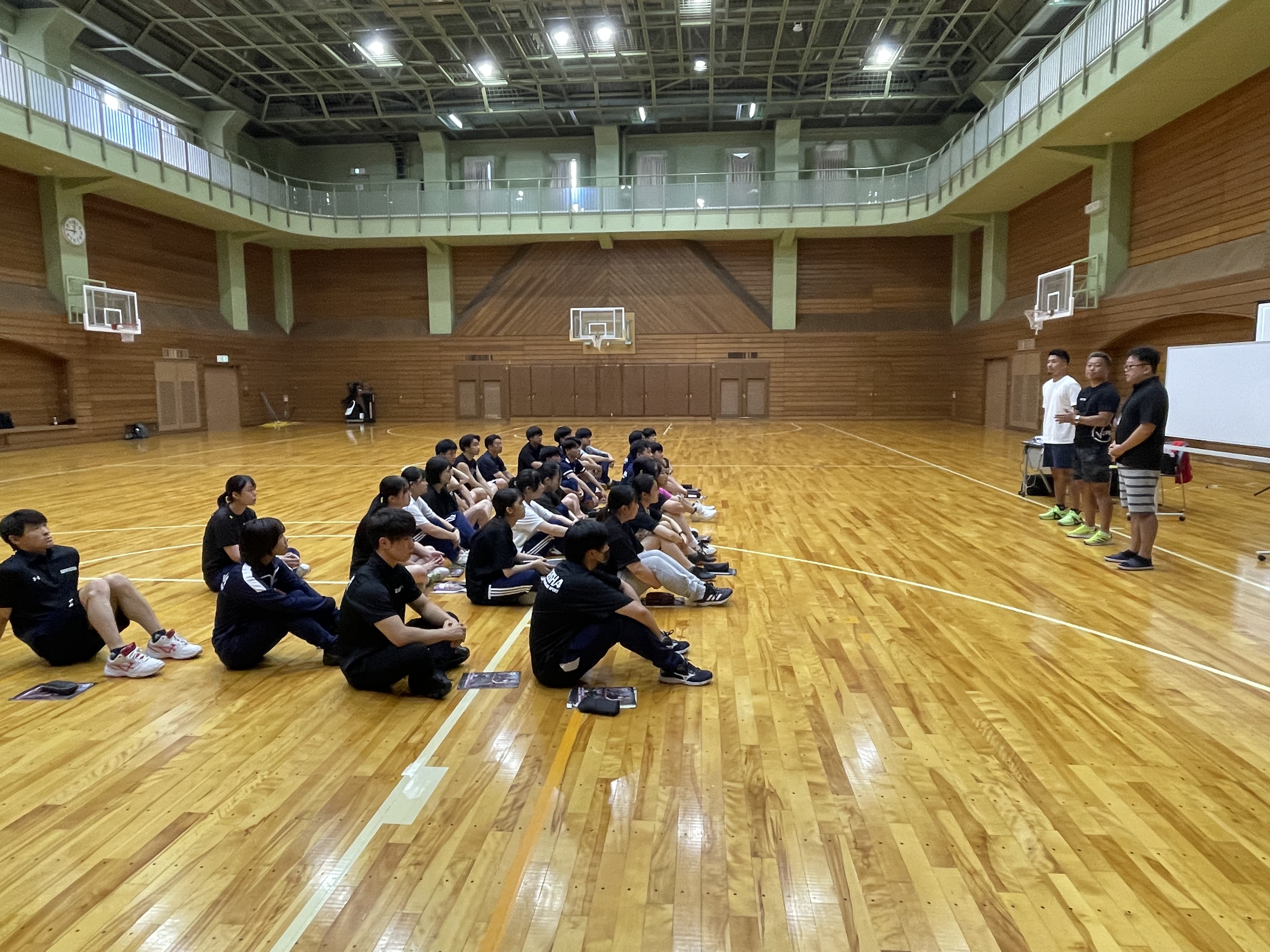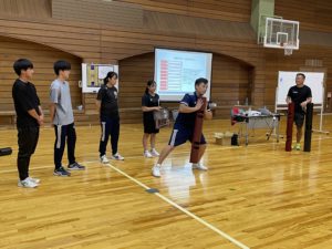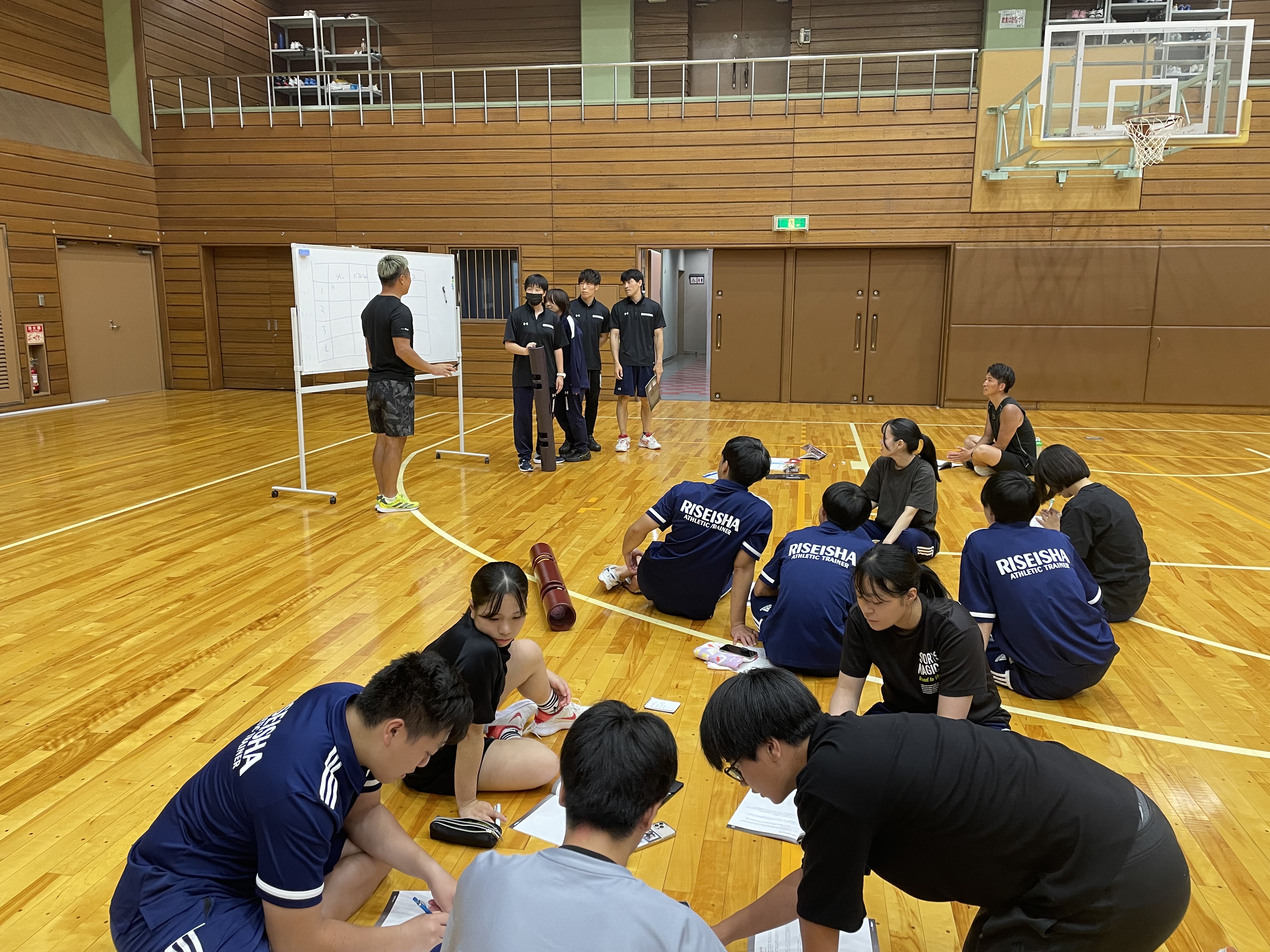 体育館アリーナで9:00〜18:00で講義と実技を学びます。