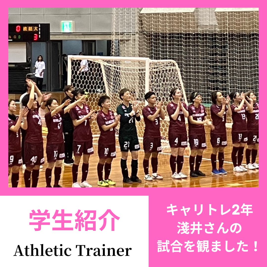 キャリトレ2年生の淺井さんは、フットサル選手としてプレーをしながら大学で取得した鍼灸師資格等を使い働き、AT資格取得に向けて勉強中です。