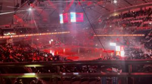 アリーナが暗くなりたくさんのライトがアリーナを照らします。