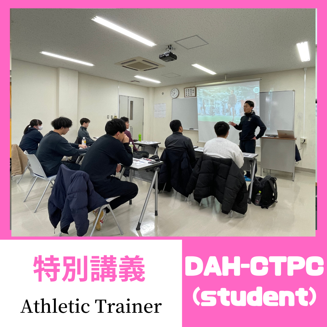 株式会社DAH(Dome Athlete House)が過去10年間のノウハウの蓄積を整理し、日本のアスリートが安全にそして楽しんでプレーするために、チームトレーニング指導に特化した、トレーニング指導者育成のためのプログラムを学生向けに創ったものになります。