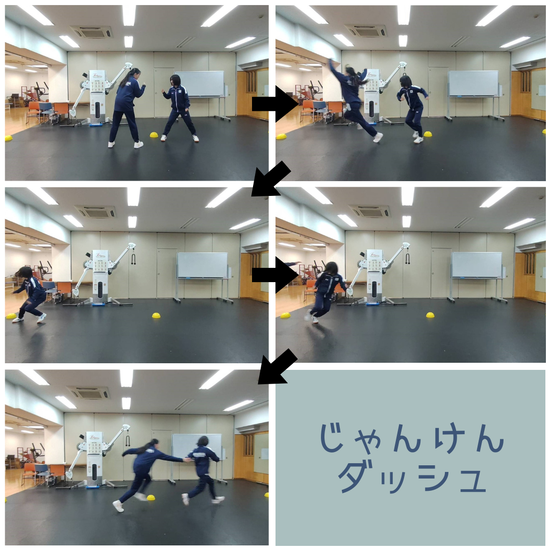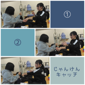 ②逆の手でじゃんけんをして、勝った側は相手の手を握り、