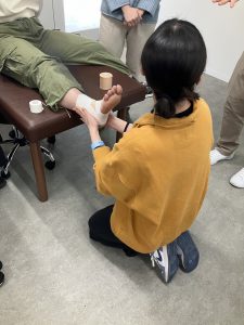 トレーナーさんに巻いていもらっている方、自分で巻いている方