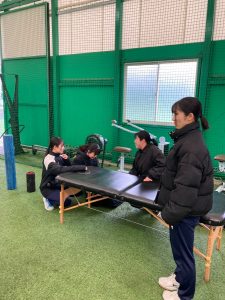 履正社高等学校女子野球部の合宿実習の帯同は初めてでした。ストレッチの仕方やほぐし方など、