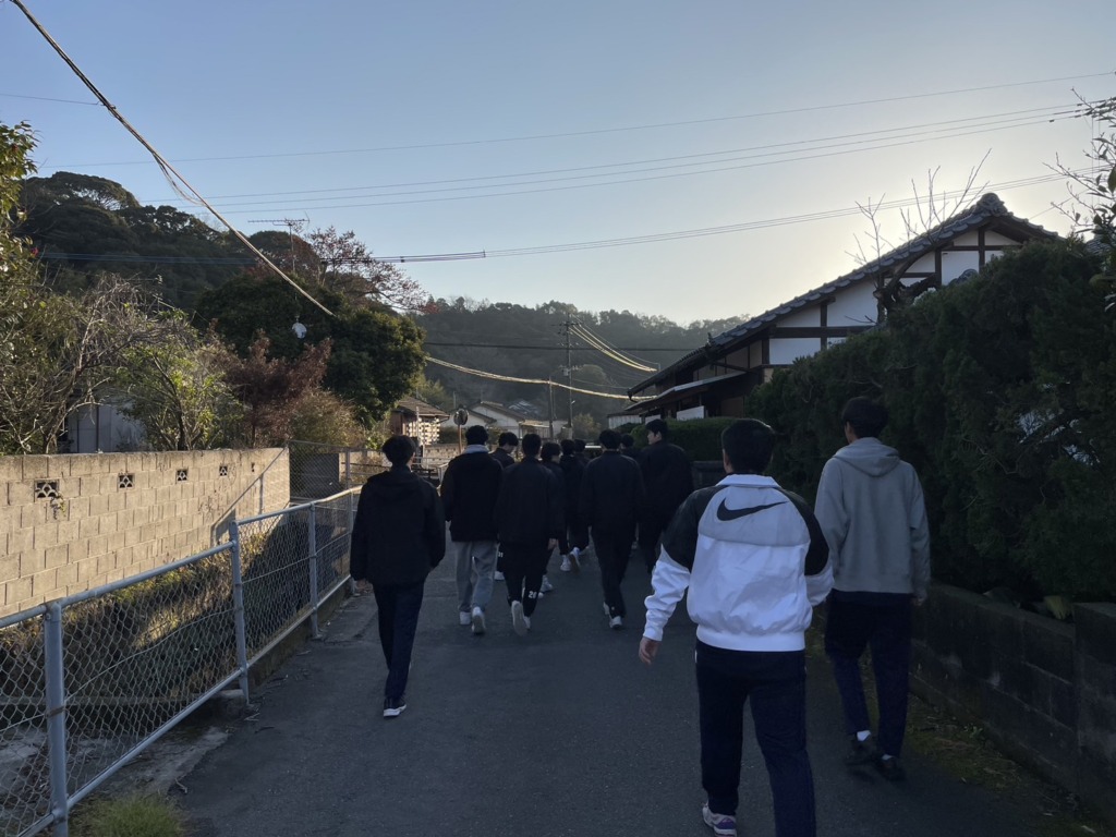 宿舎の大きな駐車場をぐるりと回ります。選手の状態確認はとっても大事です。