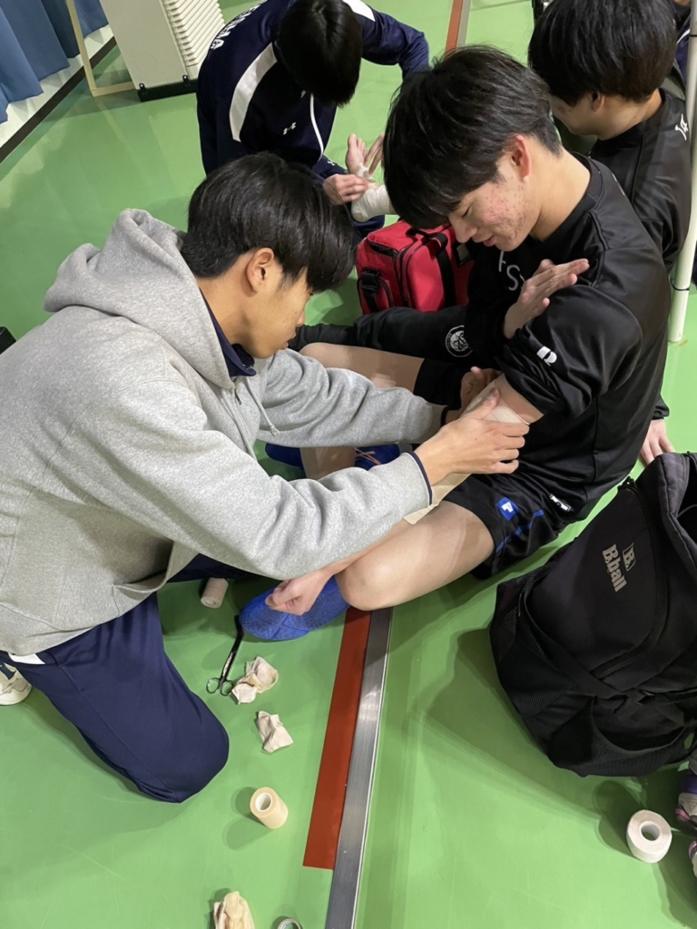 今回の参加学生は普段バスケットボールコースに関わりの少ない学生が多かったですが、選手のサポートを試合前、試合中、試合後、そして宿舎でのケアと頑張ってくれました。