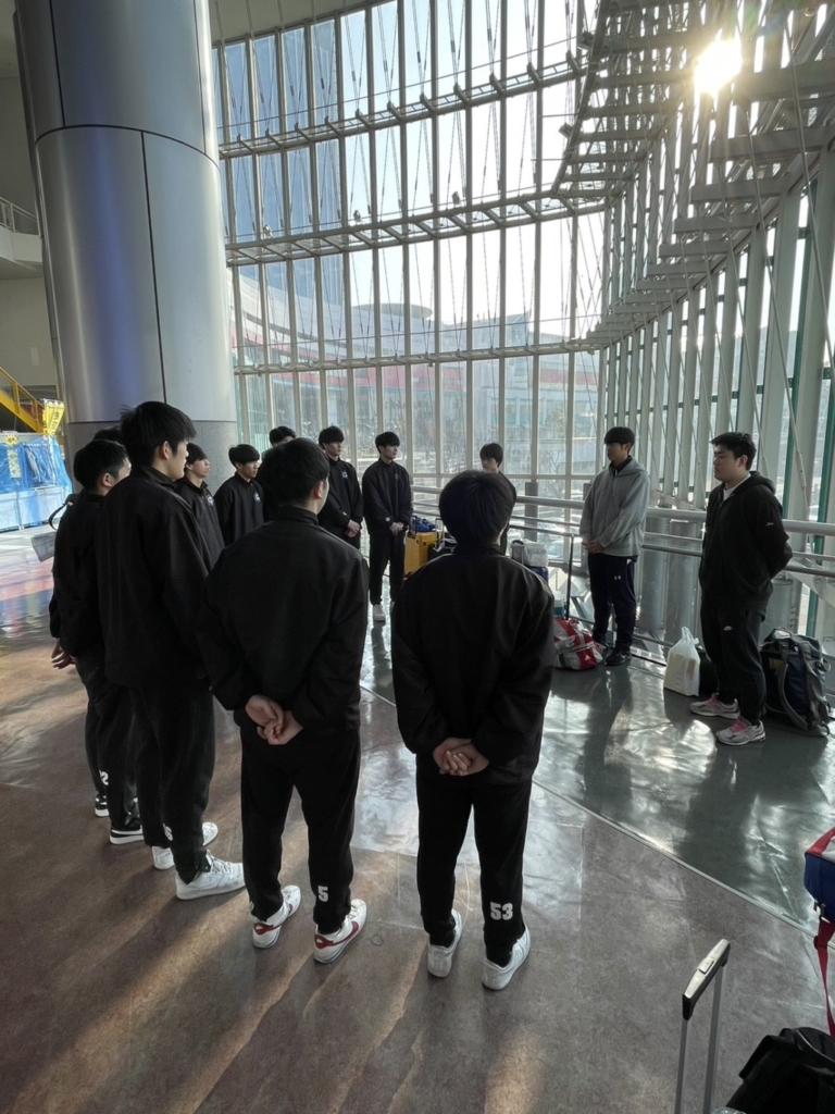 本校バスケットボールコースの学生が大学生と試合をする3泊4日の遠征です。