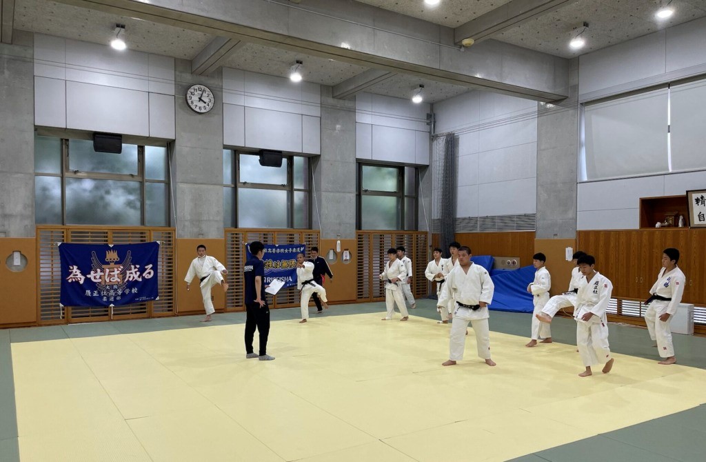 柔道部では新入生に対してのトレーニング指導が行われています。
