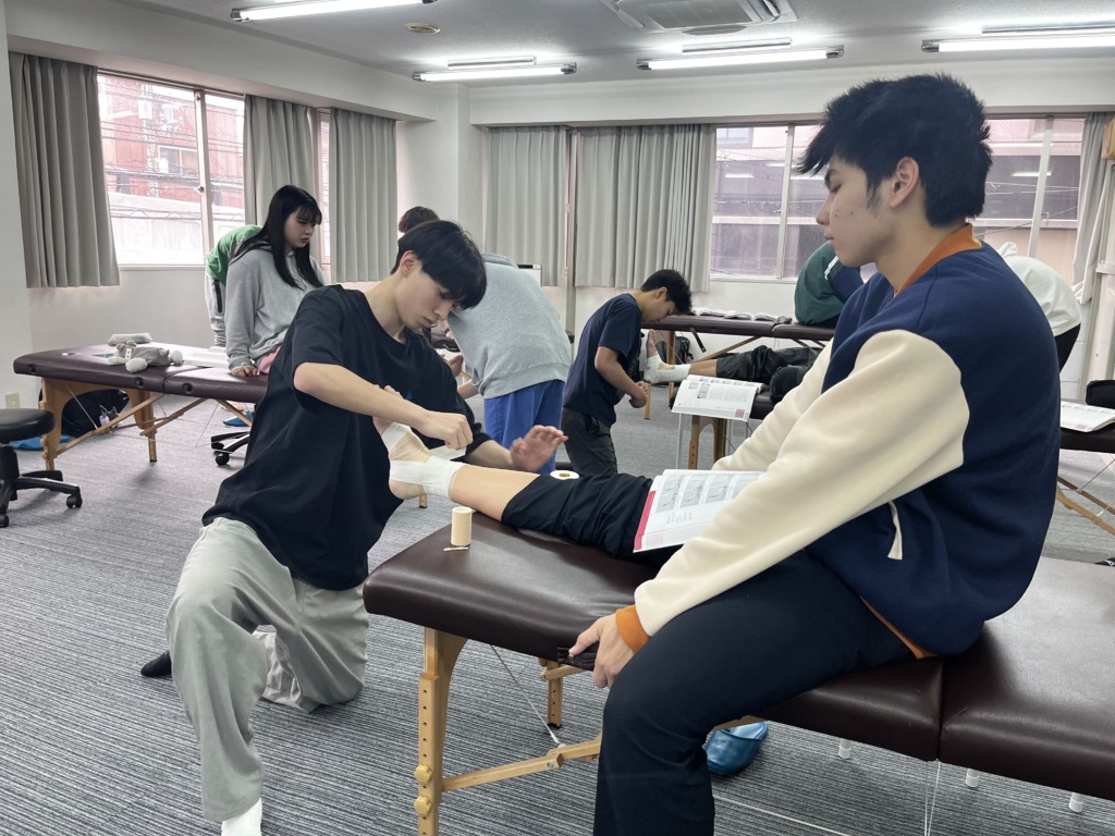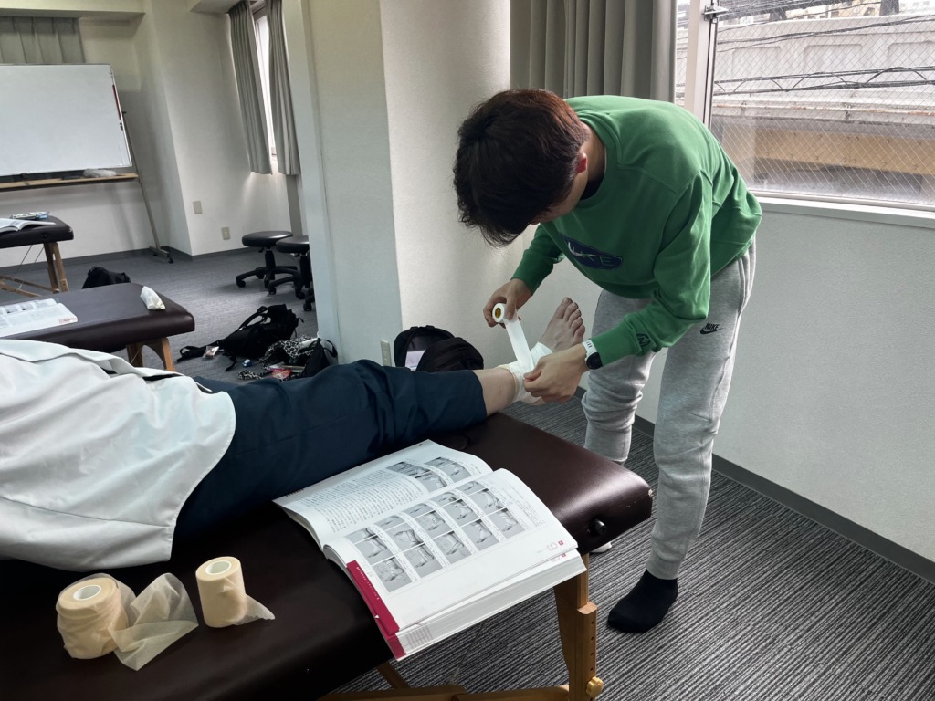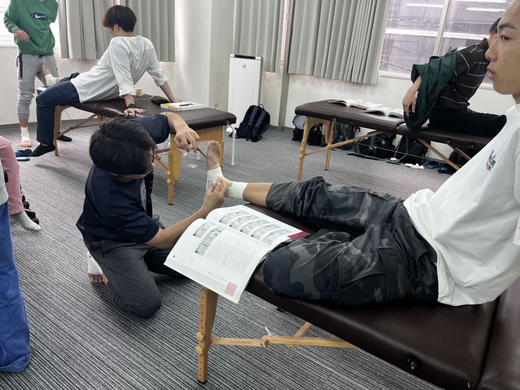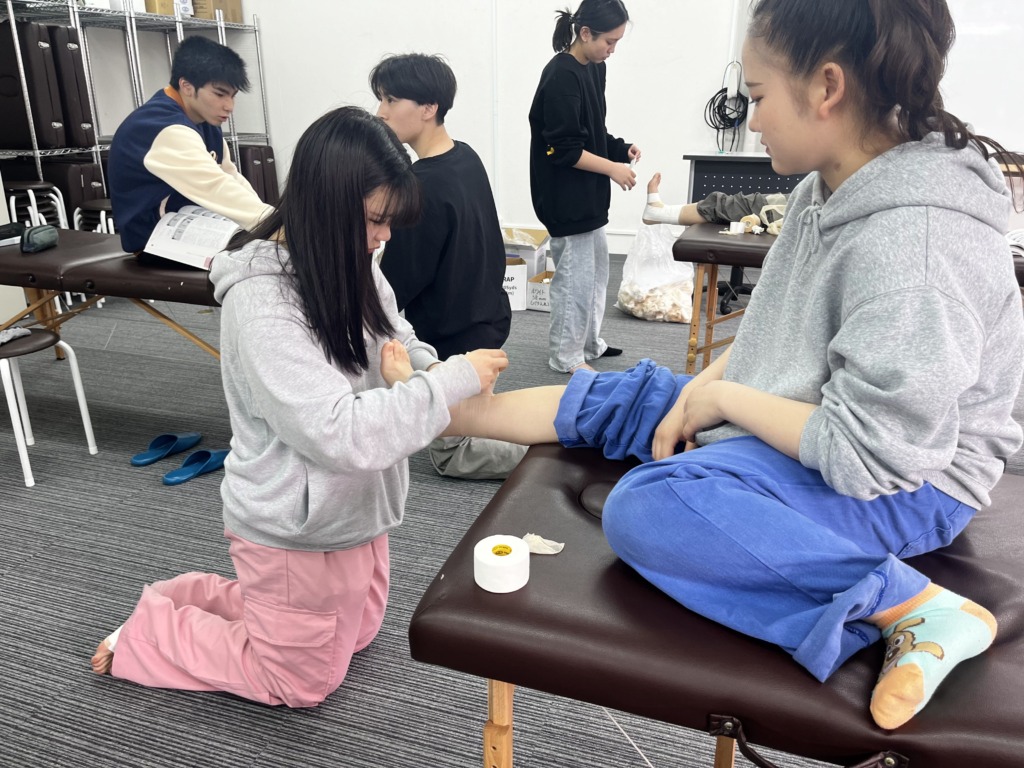 テーピングの授業は実技授業として扱われますが、ここでは基本となる