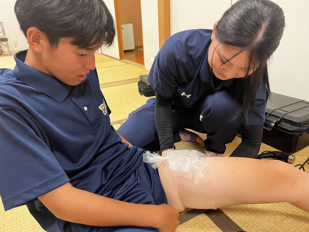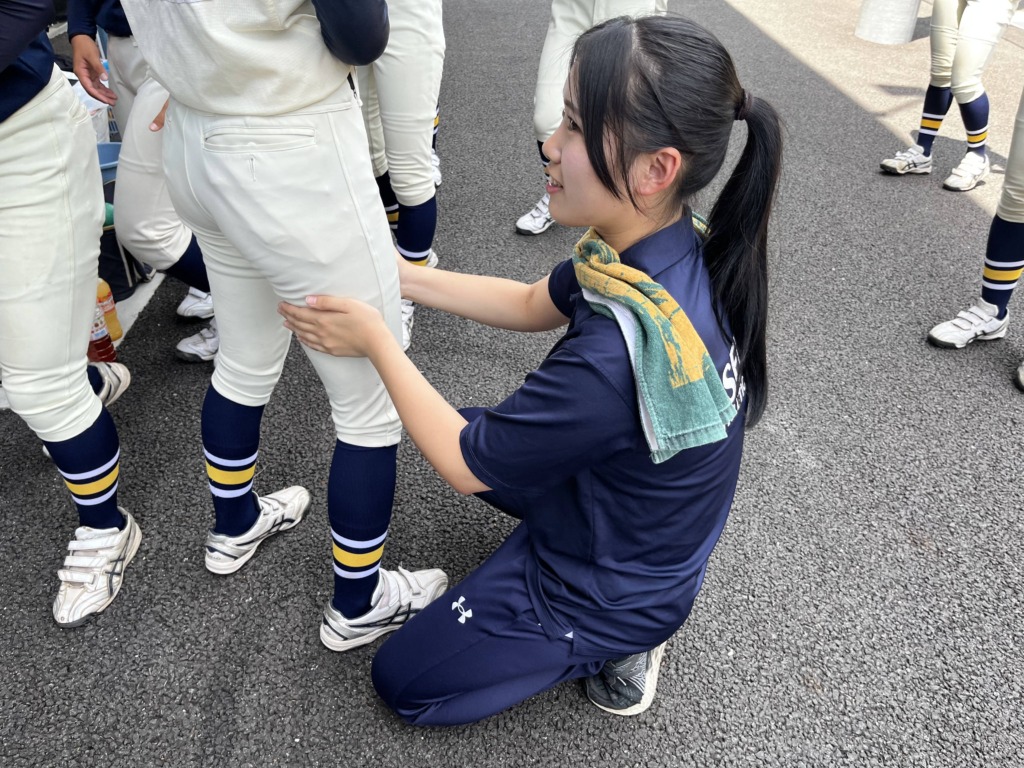 今年は、毎週水曜日に実習に行かせていただいてる履正社高校女子野球部の大会に帯同させていただいています。普段は練習をみたり、怪我人のコンディショニングをメインに行っていますが、合宿実習では、試合に出たメンバーのコンディショニングや試合中の怪我人の対応など、週に1回の実習では味わえないことをたくさん経験しています。