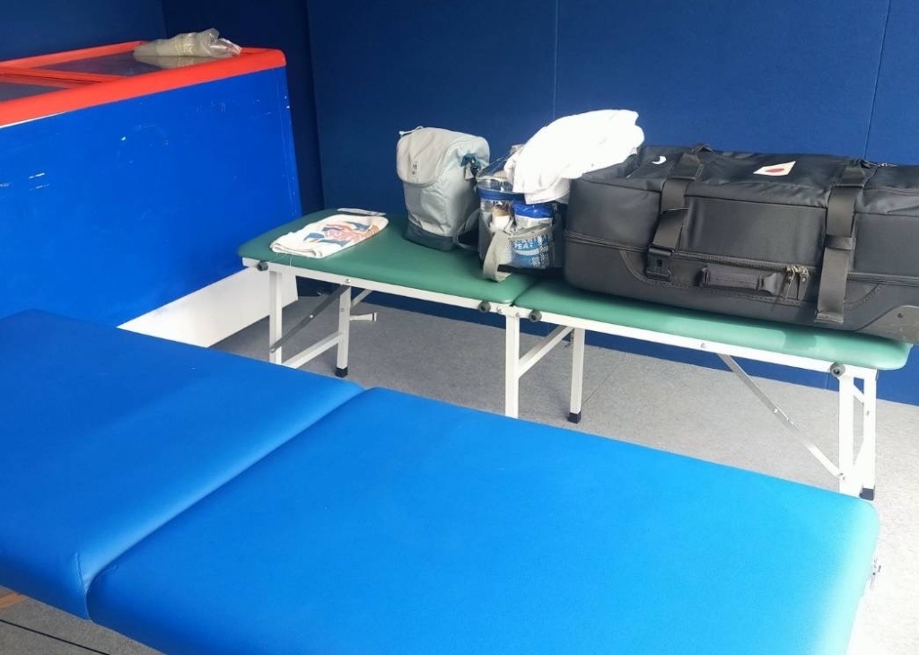 ↑ 大会会場にフィジオルームが2部屋あり、ベッドも各部屋2台ずつ設置されてました。また、氷・飲料水も準備されており、驚きました。※今大会のスポンサーのRed Bullも飲み放題でした。
