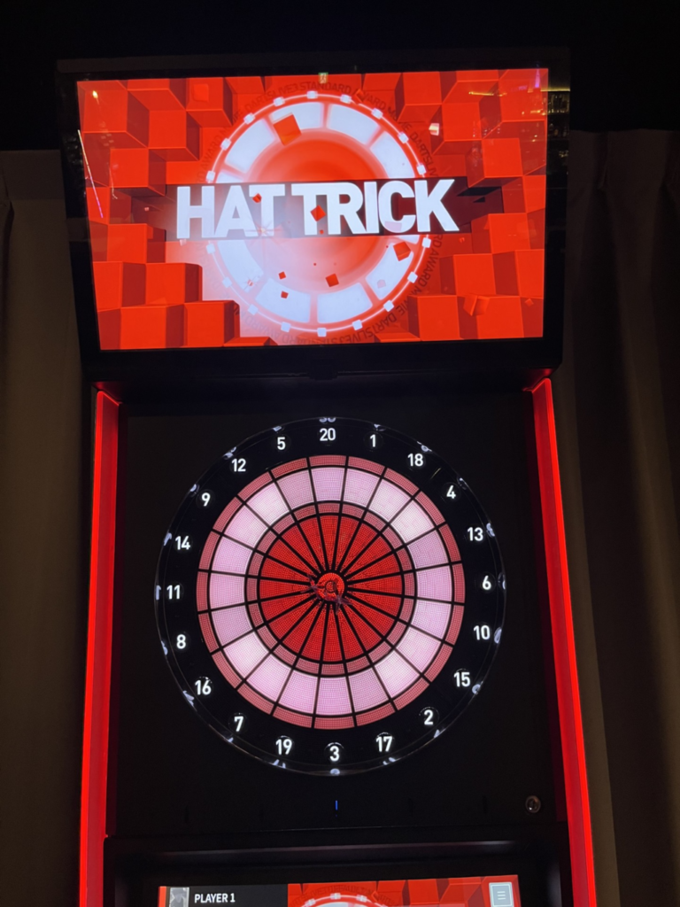 これはハットトリックといって、ダーツボードの中心のBULLといわれる場所に3回連続、