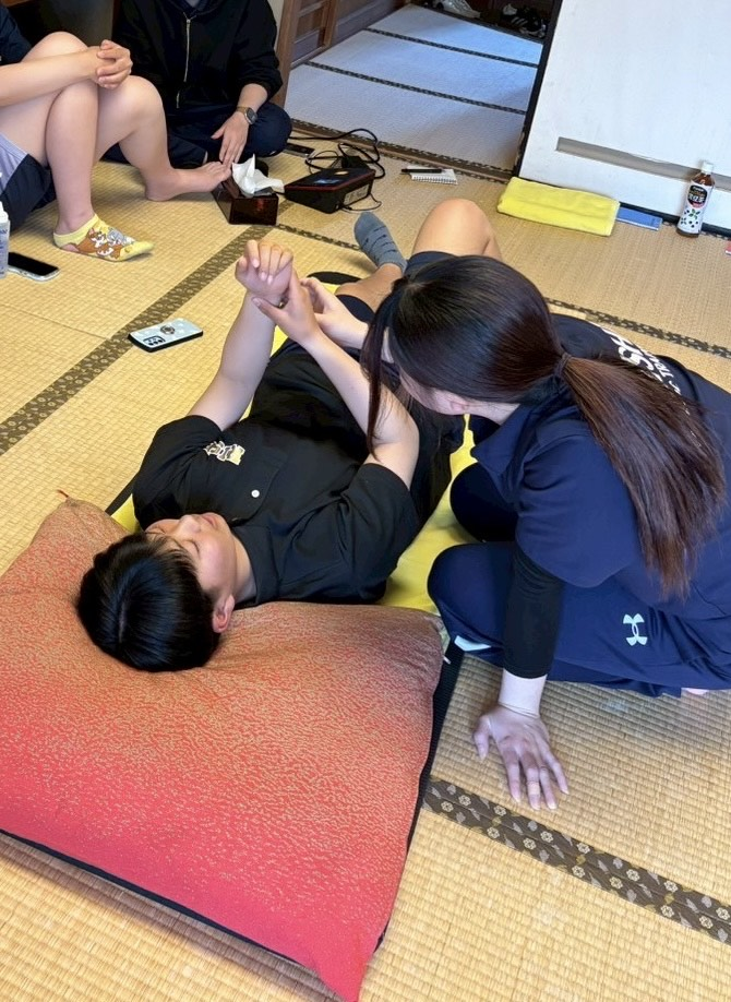 今回の合宿実習では、コンディショニングや応急処置をメインで行いました。