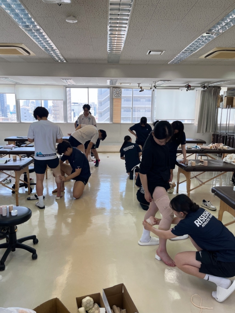 この授業では、基本的なテーピングを巻くという技術を習得してもらいますが、