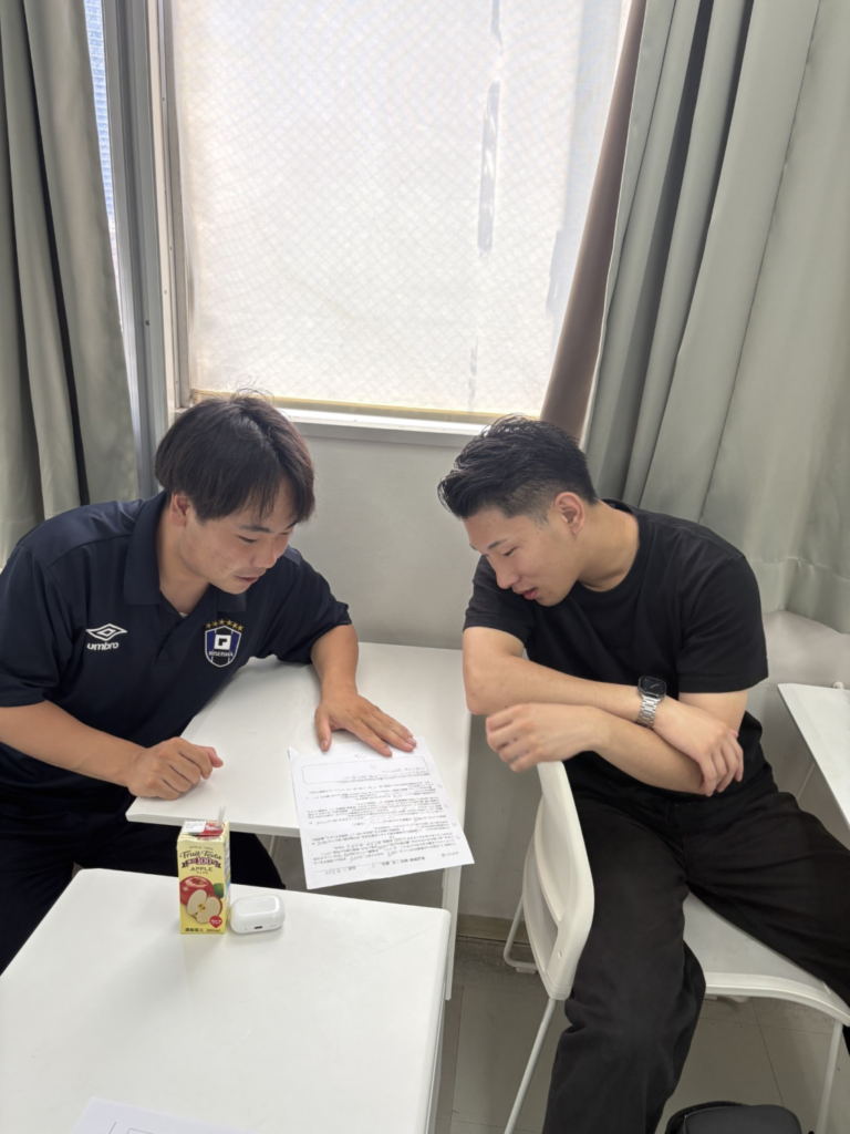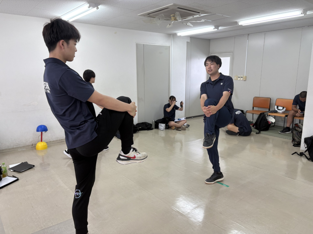 ウォーミングアップメニューを考えて、指導できているかをお互いに確認をしあっています。