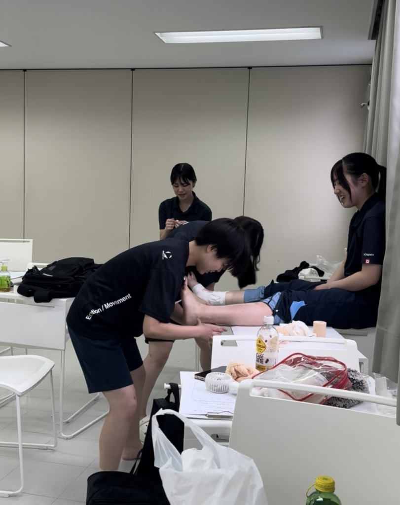 放課後に、実技試験であるテーピングの練習をみんなでしたり、