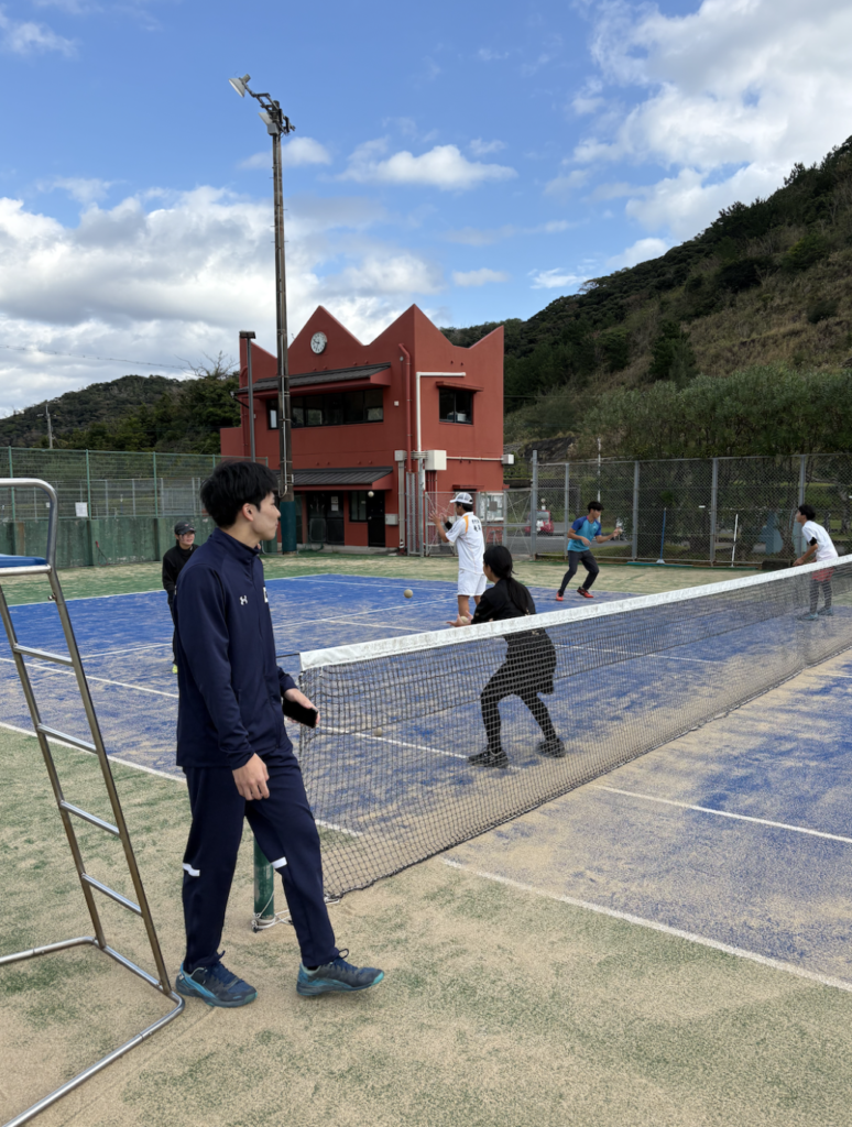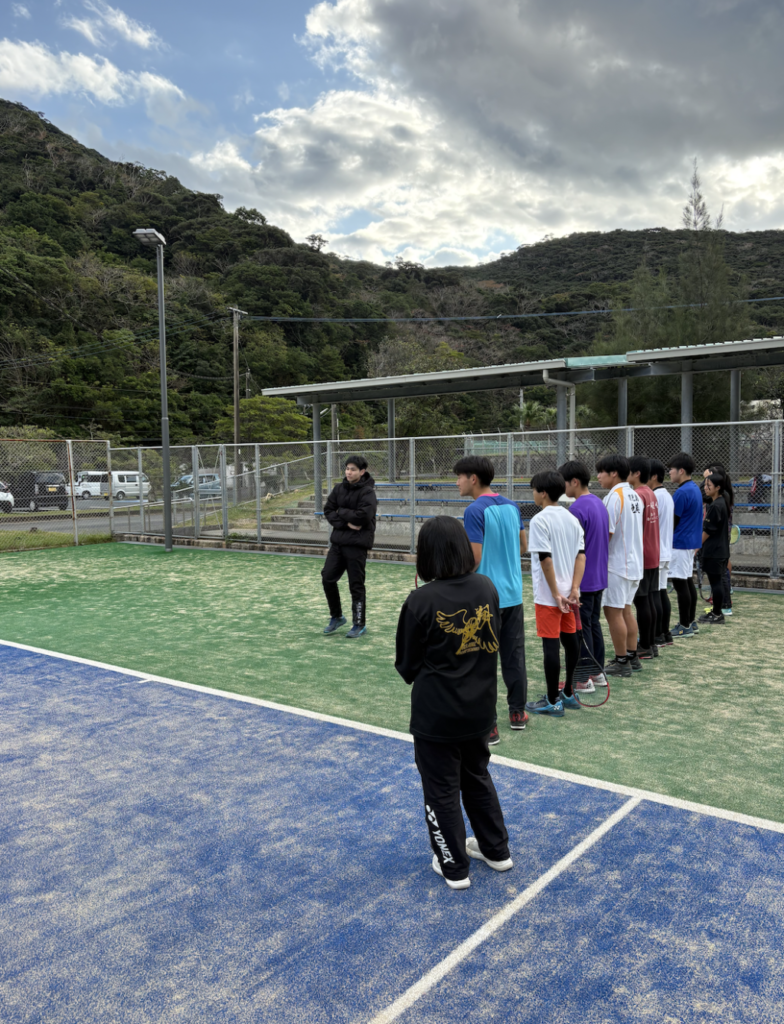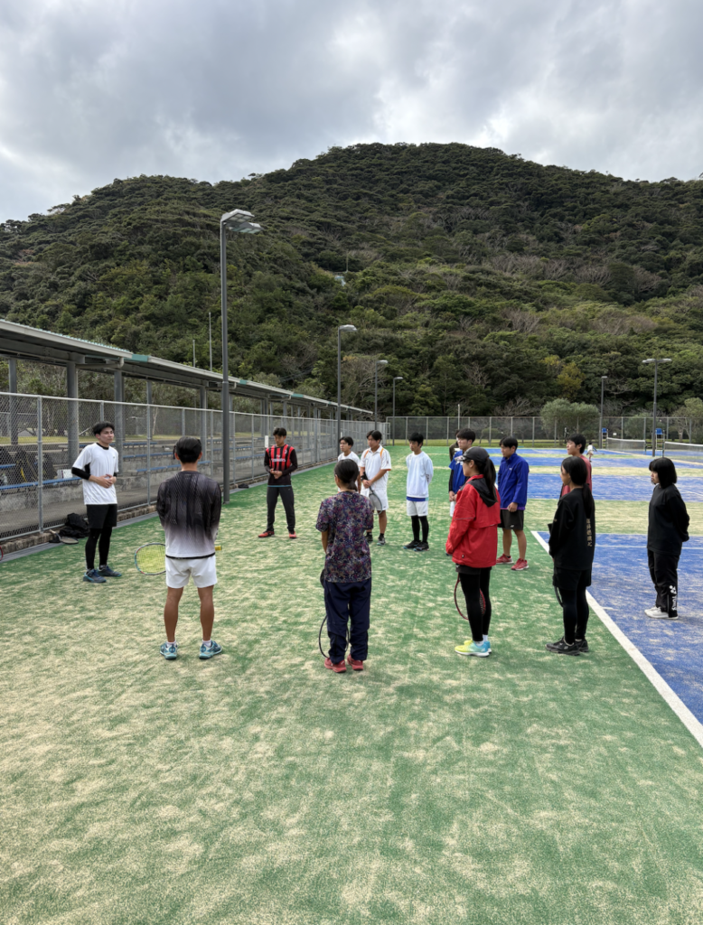 奄美大島にある、奄美高等学校ソフトテニスコースへ吉野くんと行きました。