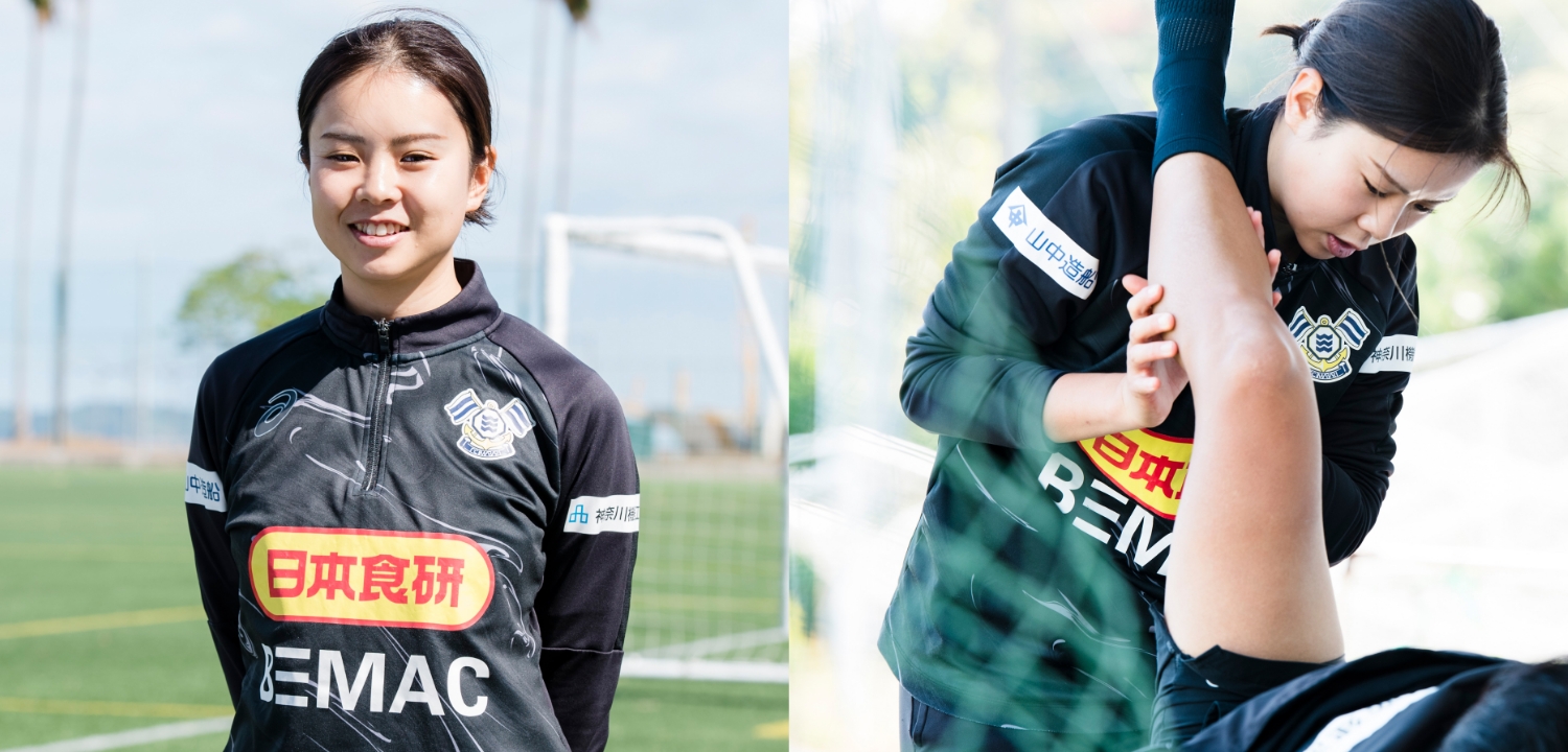 2000年生まれ、愛媛県出身。広島文教大学附属高校を卒業後、本校へ。サッカーコース在籍時は女子選手の提携先(※当時)、スペランツァ大阪でプレー。その後FC今治レディースでの選手活動を経て、22年12月に現役を引退した。現在は同チームの専属トレーナーを務めている