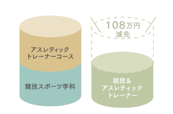 競技スポーツ学科の1年分の授業料と施設設備費をあわせた98万円に加え、アスレティックトレーナーコース入学金10万円を免除します。