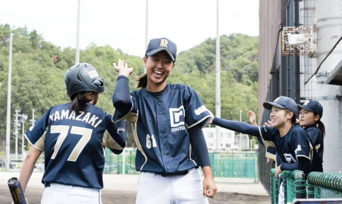 2012年に創部した女子チーム「RECTOVENUS」は、創部2年目で全国大会優勝の快挙を達成。その一方で、初心者も歓迎です。初代キャプテンは吹奏楽部出身。ソフトボールや軟式野球経験者ももちろんOKです。スポーツに打ち込んでいた経験があり、女子野球に興味のある方なら、活躍できる可能性は十分にあります。また、海外との交流が活発なことも魅力の一つ。野球を愛する海外の選手たちと切磋琢磨しながら、女子野球のワールドカップ出場を目指す学生もいます。