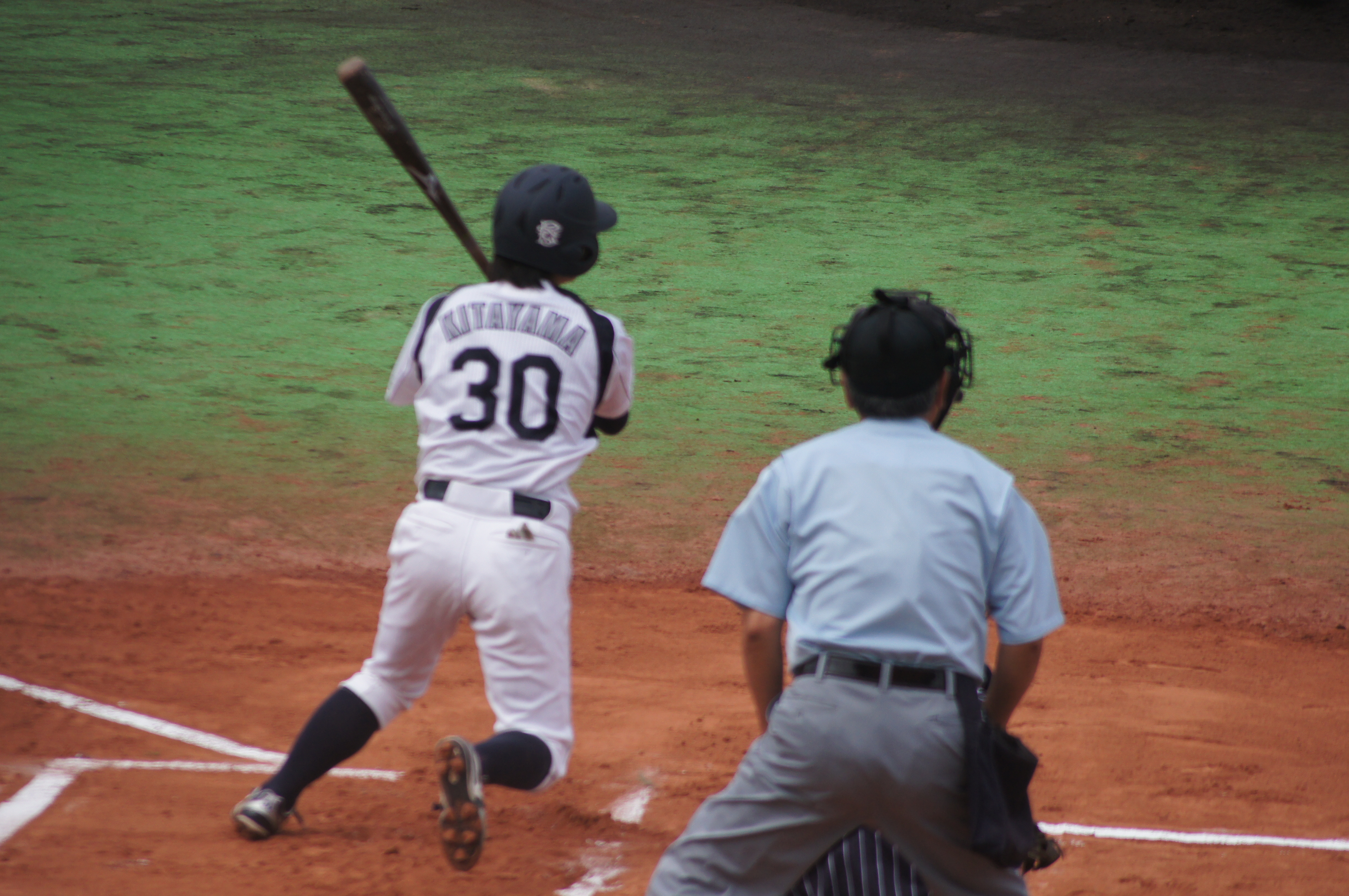 1回の表、履正社Aチームの2番北山君がツーベースヒットで出塁。