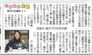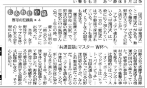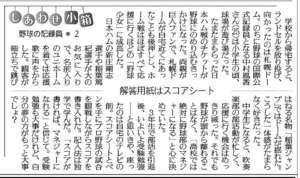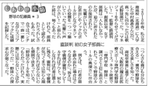 2020.05.11 新聞掲載のお知らせ 本校野球コース講師の中村風香さんが 読売新聞夕刊の「しあわせ小箱」にてとりあげられました。 (2020年3月30日~4月3日掲載) 今回の記事には、公式記録員としての活動に関してはもちろん、野球に関わるきっかけや、高校時代のお話など 盛りだくさんの内容がつまっています。 ぜひ、ご覧ください。 前の記事 記事一覧 次の記事