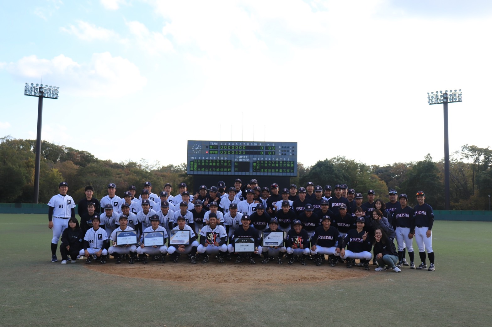 4勝1敗で1位となった履正社学園、続く履正社ベースボールクラブと3位の島津製作所によるクライマックスシリーズが11月14日、アメニスキッピースタジアムにて行われました。