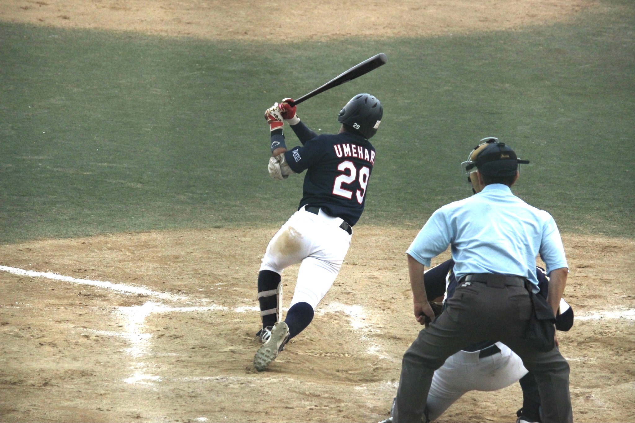 井本が安打で出塁すると続く梅原の犠打で得点圏にランナーを置きます。