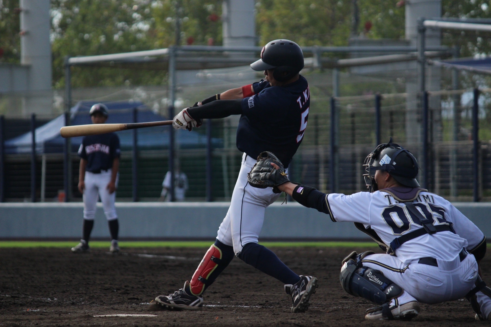1番、2番と打ち取られるも3番猪崎がセンターオーバーのスリーベースヒット!