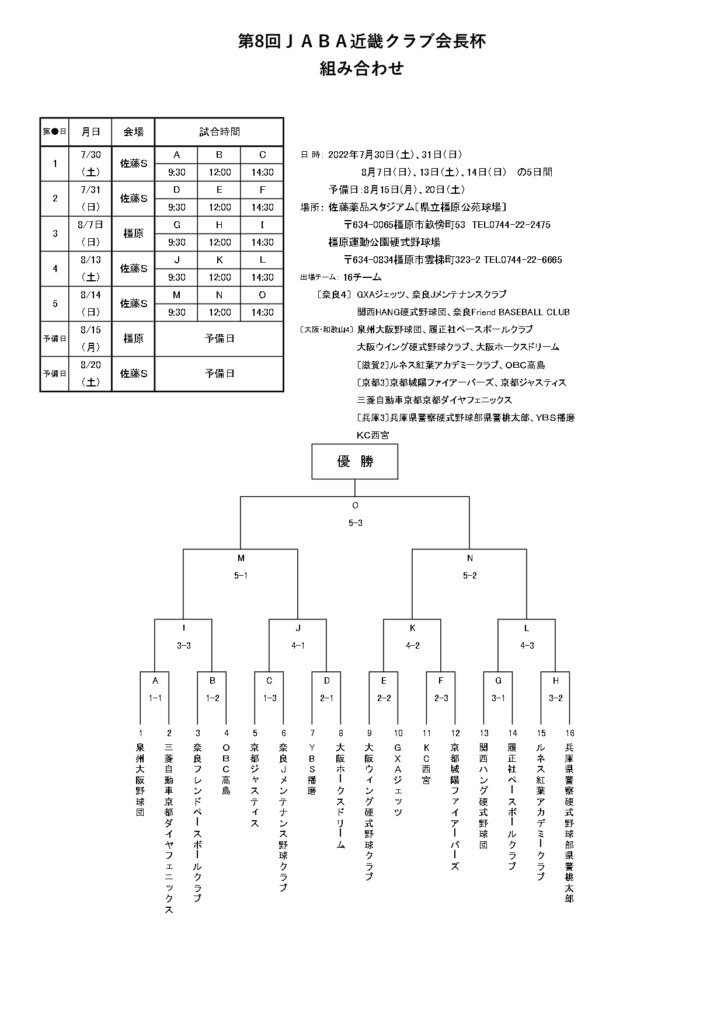 この大会は大阪、兵庫、京都、奈良、滋賀に所属するクラブチームのうち16チームが出場するトーナメント戦です。