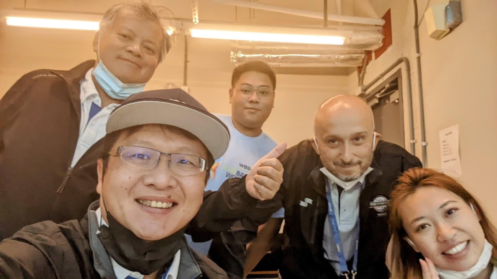 (左から台湾のスコアラー、奥はディレクターの通訳さん、イタリア人のスコアラーディレクター、右端が私です)